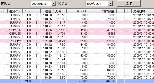 その後、1回負けたので、前半戦は7pipsプラスで終了でした。